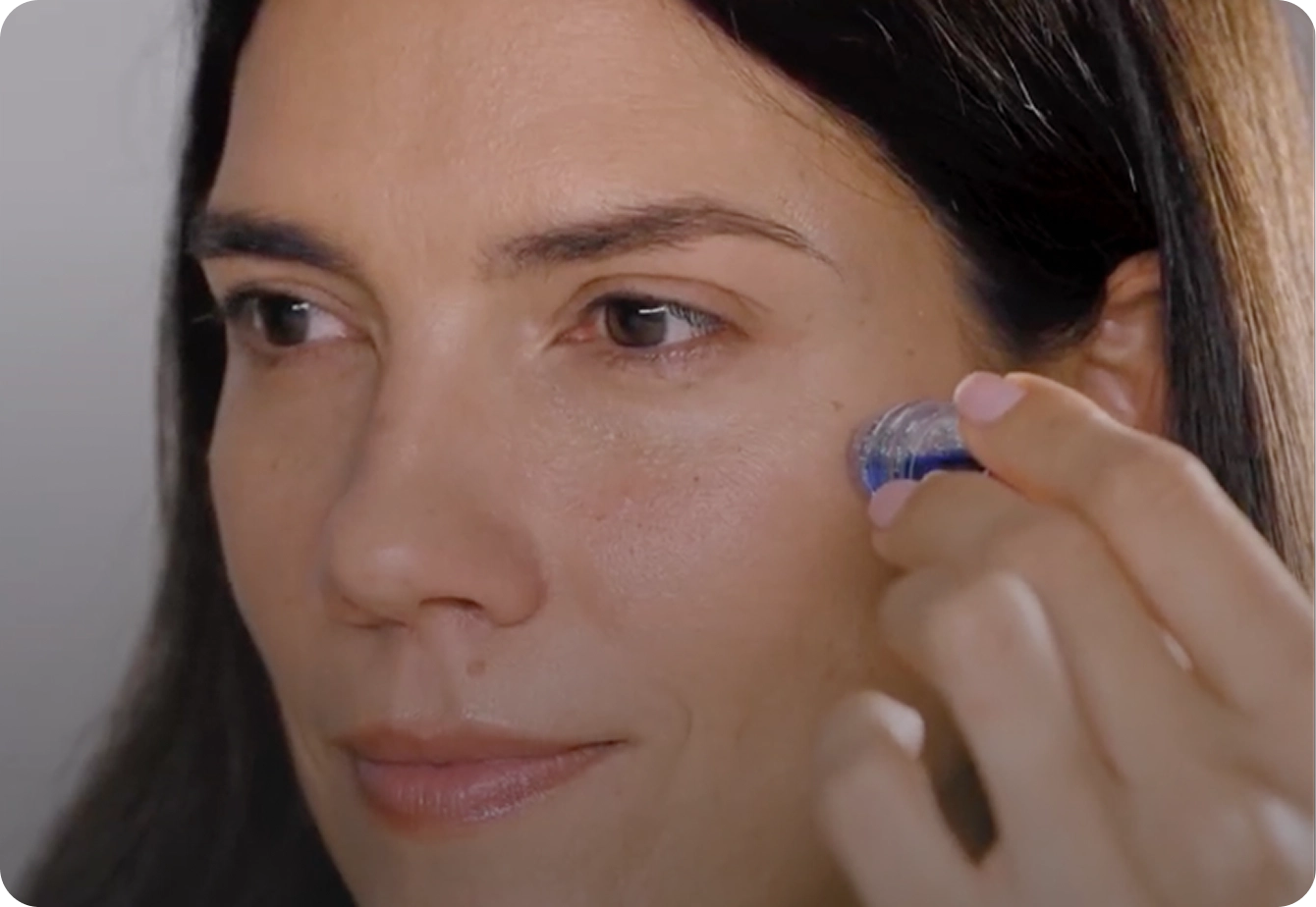 Make sure to apply a very gentle pressure, up to your orbital bone, when stamping around the eye area. We also recommend only doing one pass in this area.