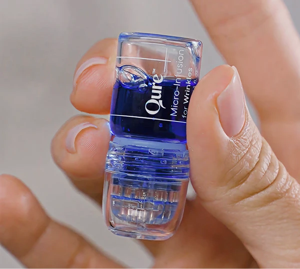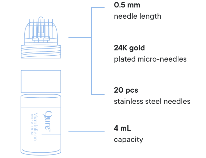 Qure's Micro-Infusion device uses 24K gold plated needles to deliver concentrated serum directly below the surface of your skin.
