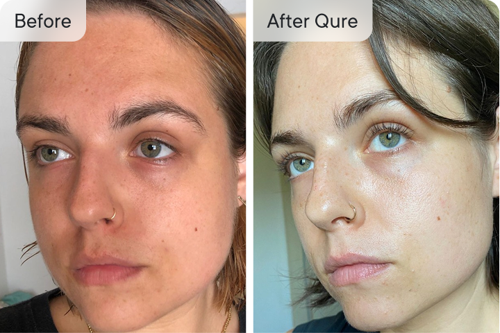 With consistent use, Qure supports long-term skin health and helps you maintain a radiant, balanced complexion, all without needing to layer on multiple products or book clinic appointments. *As reported by customers in self-perception surveys and before-and-after images. Individual results may vary